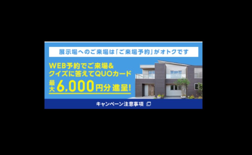 WEBから来場予約のうえ展示場へご来場いただき、簡単なクイズにご回答いただくと、最大6,000円分のQUOカードを進呈。