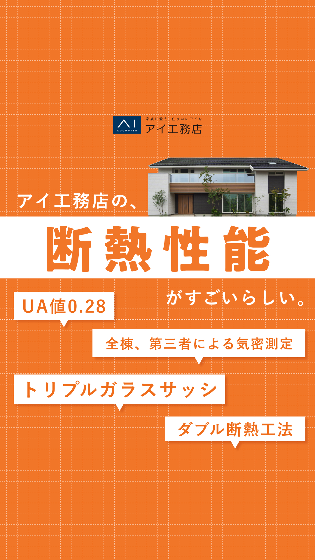 【アイ工務店】!!新商品発売!!超!超!超!大好評!!アイ工務店の『断熱性能』がすごいらしい! 2025年12月18日 最終更新日時 : 2025年12月16日 child アイ工務店から新商品!Nees 0.28発売!!■ UA値 0.28以下 全棟標準 ■ 全棟、第3者による気密測定 平均実測値 C値0.32以下■ トリプルガラスサッシ 全棟標準■ ダブル断熱工法 全棟標準 詳しくはこちらから