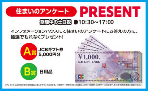 2棟ご見学で1つ・3棟ご見学で2つもれなくプレゼント