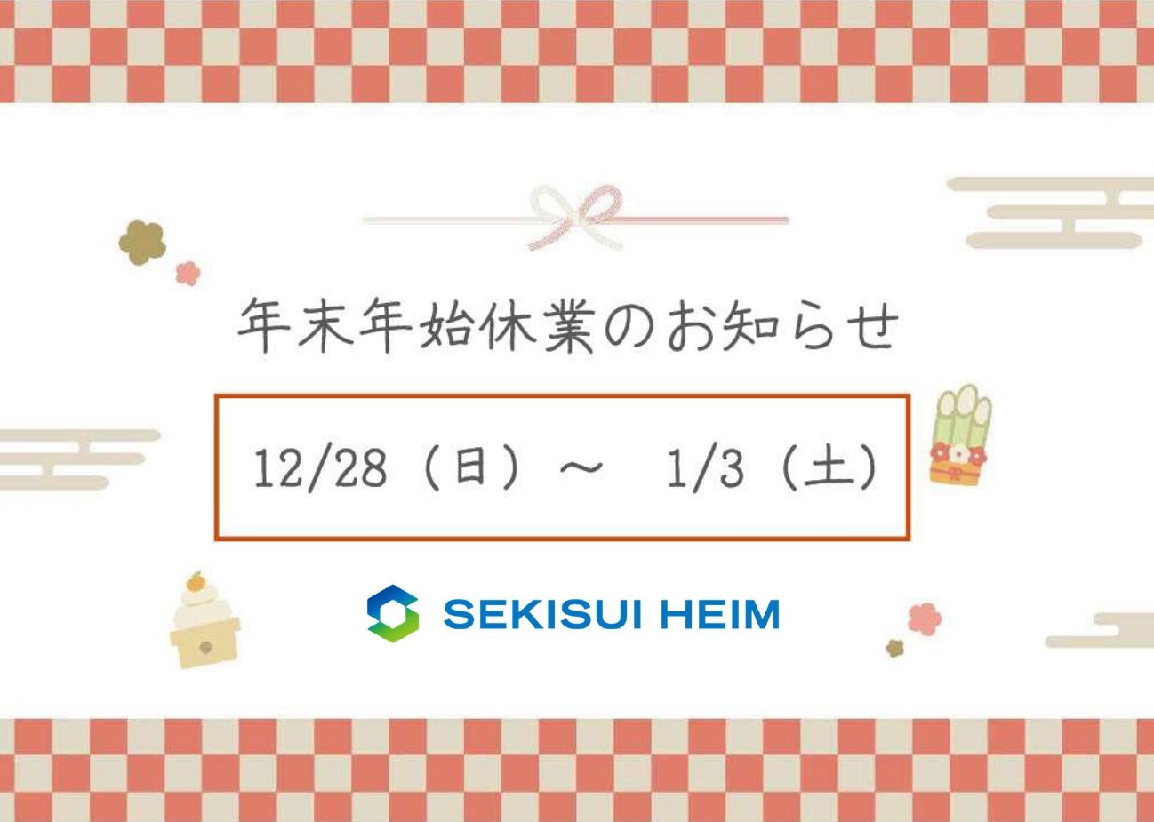 今回は当展示場の年末年始休業をお知らせいたします。
